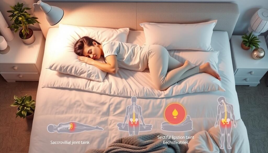 When you have sacroiliac joint pain, your sleep position matters a lot. Sleeping on the side of the painful joint can make pain worse. This can make it hard to sleep well. About 13% of people with chronic low back pain have sacroiliac joint dysfunction8.