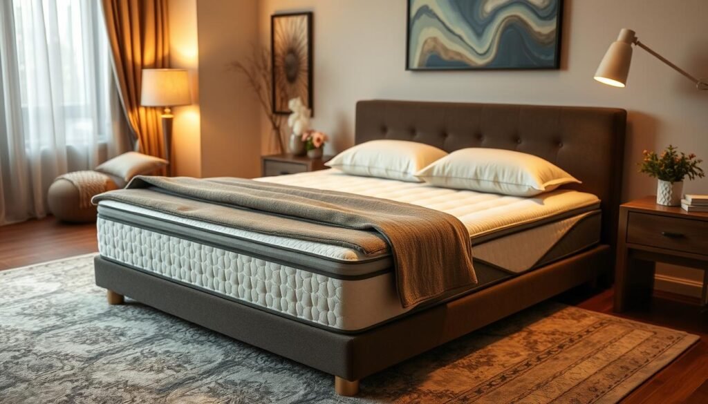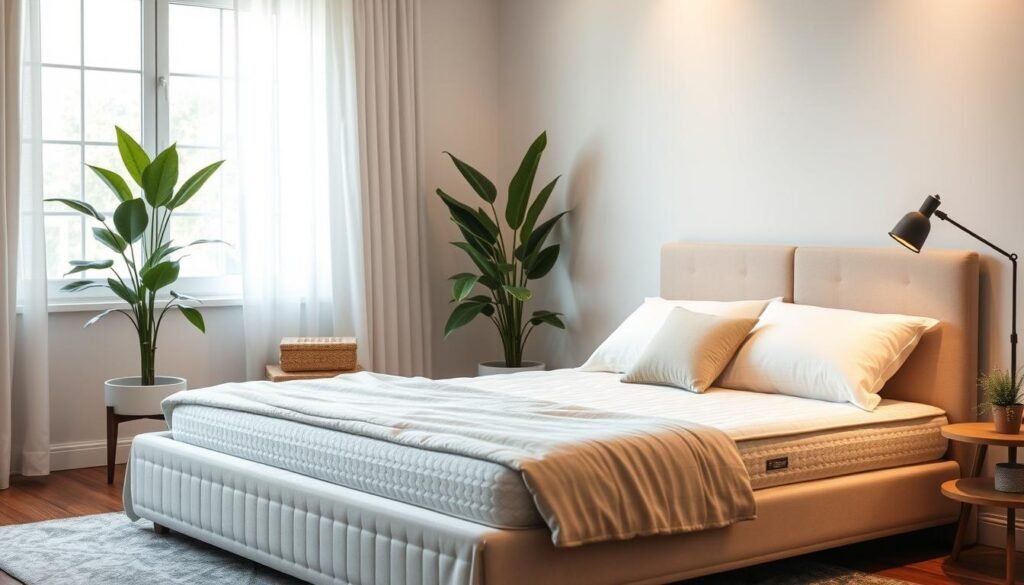Look for a mattress that fits your body’s shape and keeps your spine straight. High-density foam or pocketed coil mattresses are great for support and less motion transfer14. A mattress that fits your body’s shape and keeps your spine straight is key for sacroiliac joint pain relief15.